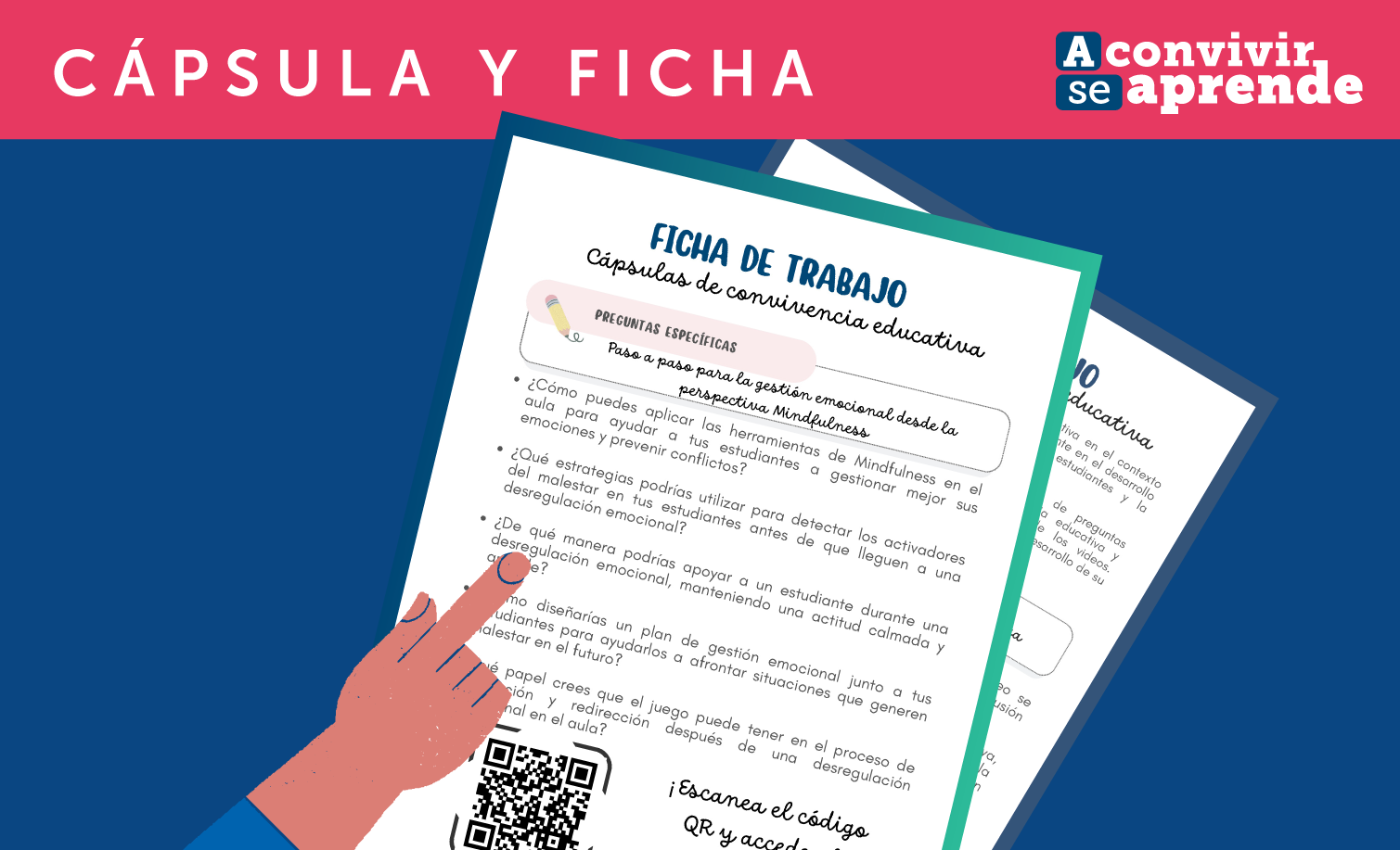 Ficha de trabajo para reflexionar y actuar en torno a la gestión emocional escolar con enfoque Mindfulness, en articulación con la Política Nacional de Convivencia Educativa. Incluye preguntas guía y acceso a cápsula en video.